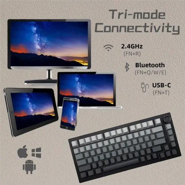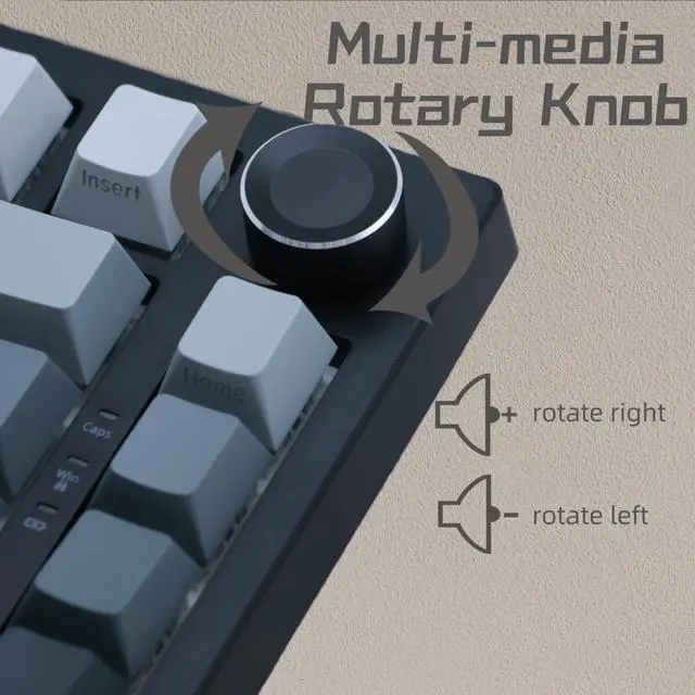 COMPACT 75% LAYOUT KEYBOARD: This gaming keyboard supports Win&MAC&Android system and improves desktop space utilization, equipped with the necessary arrow keys and a multi-functional rotary knob, provides more space for mouse movement, and is more suitable for gaming and productivity.