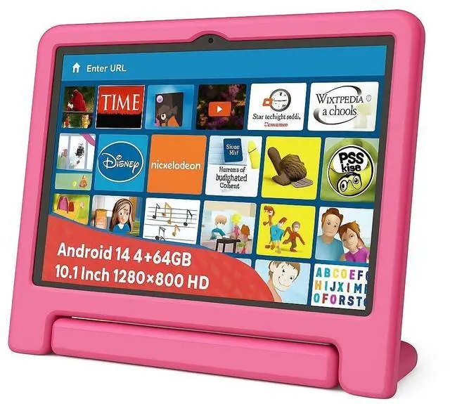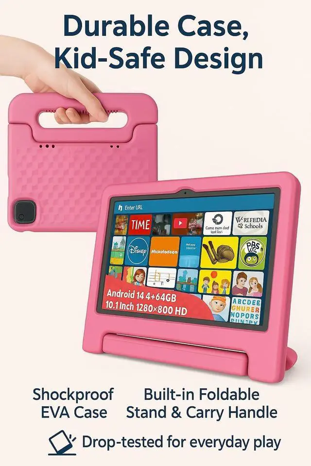 NOBKLEN 10.1 Inch Android Tablet for Kids, Teens, Octa-Core 8GB RAM 64GB Storage (1TB Expandable), HD IPS Display, Parental Control, Shockproof Case, WiFi, Bluetooth, Big Battery, Pink