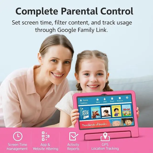 • SMART PARENTAL CONTROL TABLET FOR FAMILY USE Designed for families who want safer screen time without constant supervision. This tablet supports optional parental control apps to manage apps, filter content by category, set daily screen-time limits, and restrict in-app purchases. Ideal for home learning, shared family use, and helping build healthier digital habits across different age groups.