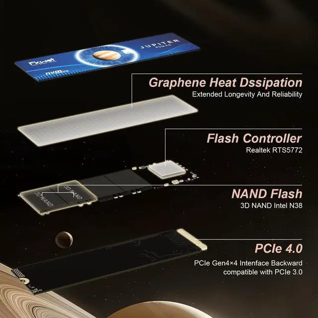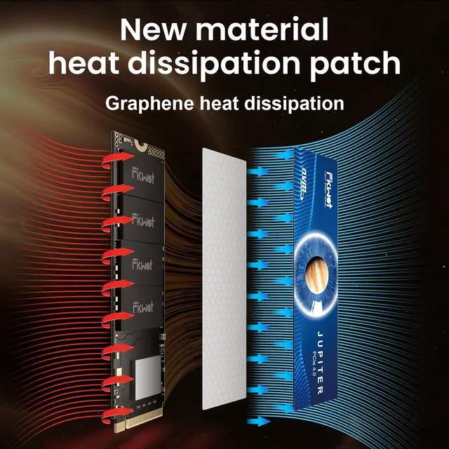 HIGH SPEED TRANSMISSIONFikwot FX660 4TB M. 2 SSD adopts M. 2 PCIe Gen 4.0 x4 technology and is compatible with NVMe 1.4 protocol. By configuring dynamic SLC cache technology to accelerate SSD read and write performance, the maximum read speed is up to 5000MB/s, and the maximum write speed is up to 4500MB/s, It significantly improves file transfer and game loading speeds, allowing for faster and smoother startups of your games and applications. ^^ EXCELLENT PERFORMANCEFikwot FX660 M. 2 NVMe SSD is equipped with a graphene heat dissipation sticker, The heat dissipation performance is enhanced without increasing the volumewhich can effectively reduce the temperature of the internal solid state drive and protect the hardware from the risk of overheating damage.