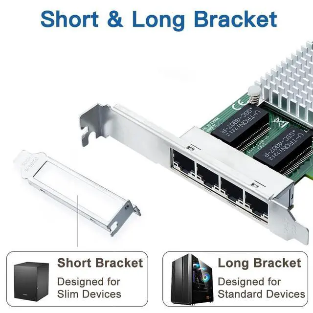 Date Rate10/100/1000Mbps, up to 100m via Cat5/ Cat6/ Cat7 cable for meeting the demands of data center environments. NOT support hot swaping ^^ Intel I350AM4 Ethernet ControllerCompare to Intel I350-T4, Quad Copper RJ45 Ports Auto-negotiation 10/100/1000Mbps. ^^ System InterfacePCI Express v 2.1 5.0GT /s, x4 Lane, PCIE_X4. Compatible with PCIE X4, X8, X16 Slot. ^^ Technical Support1-year Warranty, 30 Days Free-return, Free Lifelong Technical Support. Driver CD Included, Full Height profile bracket included that support on Standard and Slim computer/server. ^^ CompatibilityCompatible with Windows 7/8/10/Vista/XP, Windows Server 2008/2012/2016/2019, Linux, Centos/RHEL 6/7/8, Ubuntu 16/18/19/20, Debian 9/10/11, FreeBSD 10/11/12, Vmware Esxi 5/6/7, SLSE 11/12, etc.