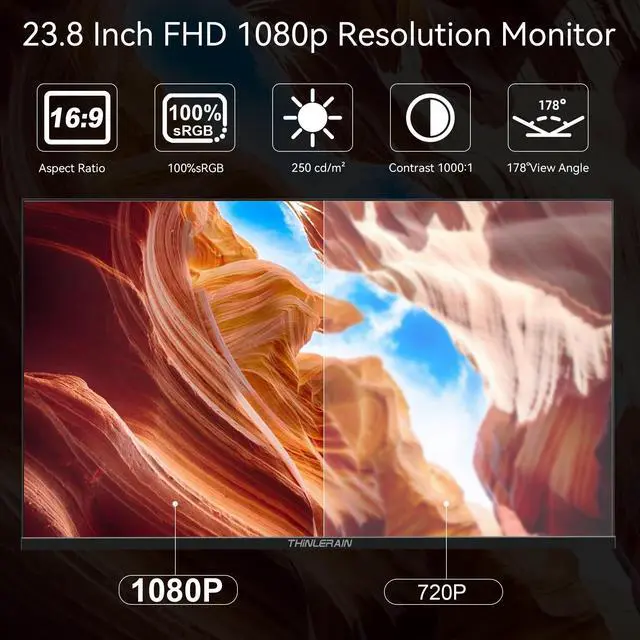 Important Notice: This 23.8 inch monitor does not auto-rotate. Screen orientation depends entirely on the source device's output signal. If your device does not support rotation, the display will remain in landscape mode. For portrait mode, ensure your connected PC/device has rotation capability in its display settings. ^^ 23.8"