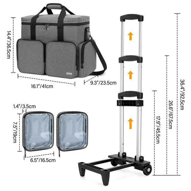 ^^ ROLLING TEACHER UTILITY BAG - With aluminum telescoping handle and silent wheels. The maximum length of the telescoping handle is 36.4 inches for satisfy users of different heights. ^^ GOOD QUALITY - Heavy duty nylon material and padded cushion around the bag to provide your teacher supplies with a great protection. Nylon webbing strap handles and detachable shoulder strap provide you with multiple ways of carrying. ^^ DIMENSIONS - L 16.1" * W 9.3" * H 14.4". CURMIO teacher rolling tote suitable for teacher, tutor, college instructor or those who need to carry their academic files and tools.