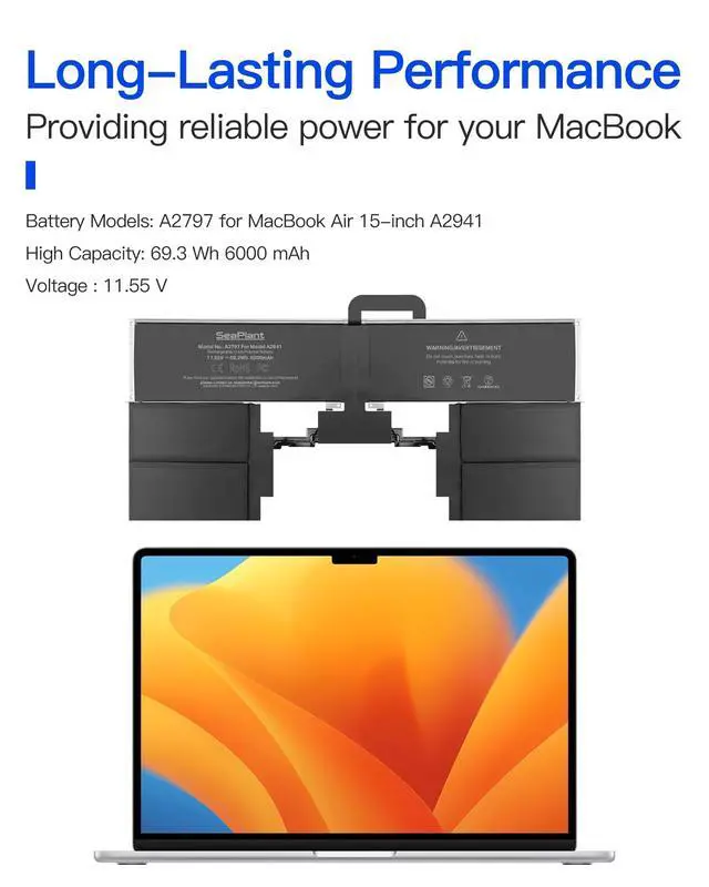 Battery Models: A2797; Fully compatible with MacBook Air 15-inch A2941 (2023 M2) A3114 (2024 M3) ^^