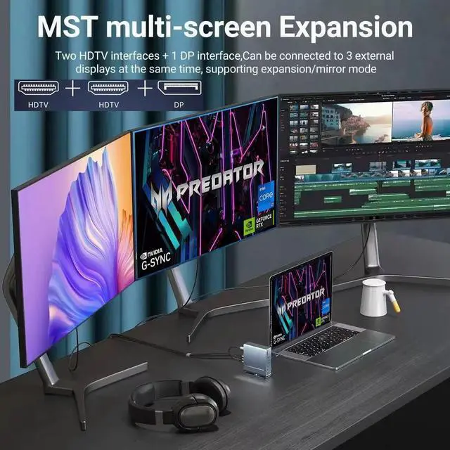 1. Triple Monitor Productivity & Immersive Gaming Expand your workspace or gaming view to triple displays with 2 4K@60Hz HDMI ports and 1 4K@60Hz DP port. For Windows users, extend your desktops across three screens to supercharge your workflow and gameplay.