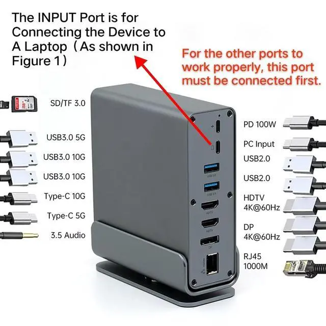 2. 15-in-1 Comprehensive Hub with 100W Charging This all-in-one dock eliminates dongle clutter! It features Gigabit Ethernet, a 100W PD charging port (keeps your laptop powered), 10Gbps USB-C and USB-A data ports, USB 3.0/2.0, 3.5mm audio, and SD/TF card readers. Connect all your accessories and peripherals through a single USB-C cable.