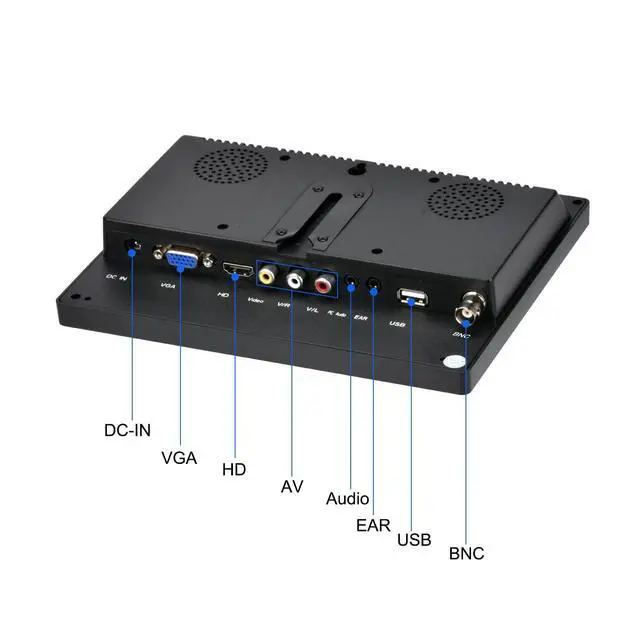 This Qcvoruno monitor is a high-brightness display with a LED backlight LCD panel. It has multiple interfaces including HD, VGA, AV, BNC, and USB. This small monitor is a good choice for CCTV, video conference, security monitoring, video recording, photo display, etc. It is also a good choice for PC, DVD, and DSLR. This portable LCD monitor has a built-in speaker, which means you can enjoy both image and sound without connecting external speakers. The monitor has multiple interfaces, including HD, VGA, AV, BNC, and USB, which can be connected to multiple devices such as laptops, desktop computers, DVD players, U disks, cameras, etc.