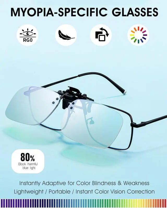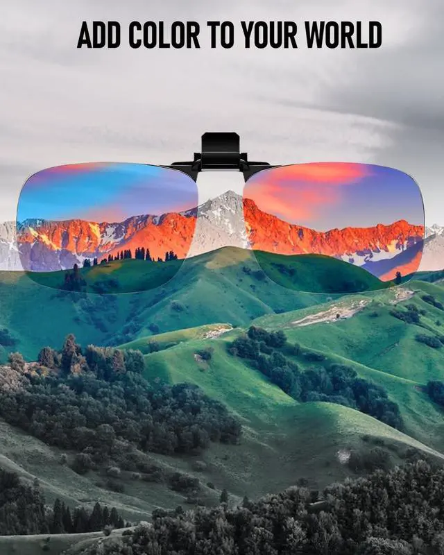 Color: Clip-On Glasses Designed for Color BlindnessAs time goes by, the vivid colors of life may fade from our vision. If you find yourself occasionally struggling to distinguish common colors, it might be a sign of color blindness. But fear not, our color blind glasses for men and women are here to help. These colorblind glasses not only assist in recognizing colors accurately but also significantly improve color perception, enhancing everyday convenience. Color blind glasses for men womenRediscover the world of color you've been missingexperience life anew with our color blindness glasses. The perfect colorblind gifts for anyone seeking to enhance their visual experience.