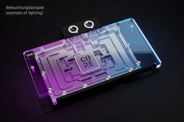 Alphacool introduces its new series of graphics card water coolers for the latest Nvidia GeForce RTX generation. Part of the Core product series, these coolers combine the highest quality with exceptional performance. Thanks to an optimized technical design, these GPU coolers deliver outstanding cooling performance. At the heart of the cooler is a copper block, precisely milled from a single piece and complemented by a precisely crafted brass terminal with a nylon cover. A chrome finish enhances the copper cooler's durability and provides a smoother, more radiant surface than traditional nickel plating.
