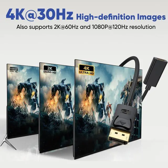 USB) 3: Backward compatible with 2K@60Hz, 1080p@120Hz Resolution ^^ After-Sales SupportWe stand behind our 4K Display Port to HDMI Adapter with a 2-year extended warranty and a dedicated support team ready to assist you with any questions or concerns during use