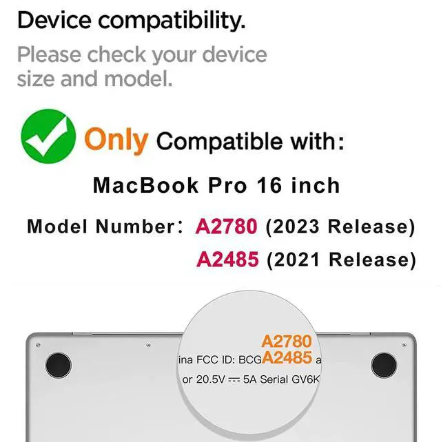 • Perfect Compatibility: Designed for MacBook Pro 16 Inch with M1 M2 M3 M4 Pro/ Max chip,2024 2023 2022 2021 Release,Model:A3403 & A3186 & A2991 & A2780 & A2485,Please kindly check the model number "Axxxx" on the back of the MacBook before your purchase, make sure you choose the exact same model number as the listing title stated.