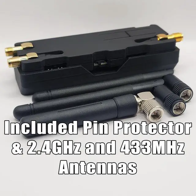Upgrade your Flipper Zero with the ESP32 NRF24 and CC1101 Board, designed to enhance your device's capabilities with WiFi, Bluetooth, and Sub-GHz functionality. Preloaded with Marauder, this board is ready to use with your Flipper Zero. Comes with three antennas and a 3D printed protective case for storage.