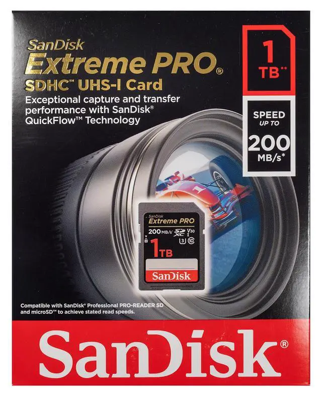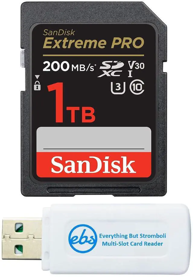 Bundle includes (1) 1 TB SD Extreme Pro SanDisk memory card and (1) Everything But Stromboli SD and Micro Card Reader.