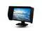 Install: 1. Opening the hooditself and put the middle part of it on the top of screen. 2. Making sure the two block strips on each side of the hood stuck to both sides of screen edges. 3. Apply the hood to fit the screen, and make sure the elastic band applies along the lower side of the screen. 4. Horizontal straightening the two belts behind the hood and joined with velcro. 5. For calibration, gently lifting up the upper side of the hood to install the sensor.