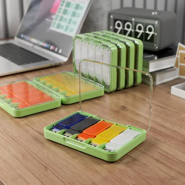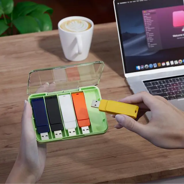 ^^ Enhanced organization: Includes five USB flash drives in different colors paired with a dedicated storage boxes, facilitating efficient archiving and categorization. Each box is equipped with a transparent lid, allowing for easy visual identification of marked USB contents at a glance. The boxes feature a compact size and smooth edges, making them easy to carry and suitable for use anywhere.