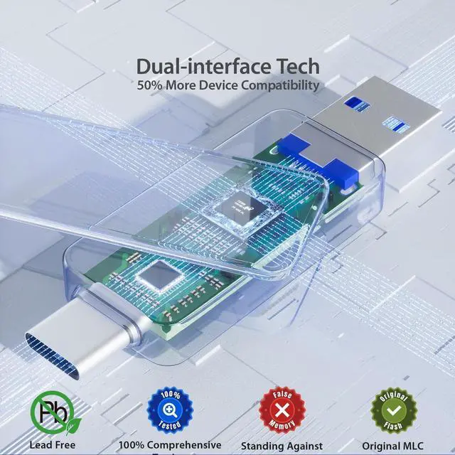 ^^ Blazing Fast Performance: Our dual-interface USB 3.0 drive boasts an average write speed of 50MB per second and read speeds exceeding 100MB per second. With its spacious 64GB capacity, its the perfect solution for seamless data transfers between your phone and computer. Transfer videos or photos captured during your daily adventures in just seconds! ^^ Our Type-C high-speed flash drive seamlessly extends your phones memory. Whether youve captured precious photos or cherished video memories, transfer them to our flash drive for secure storage. Unlike cloud storage, our flash drive offers a more straightforward and convenient way to access your datawhether youre enjoying in-flight entertainment during your travels or handling mobile office tasks. Its your ultimate data companion!