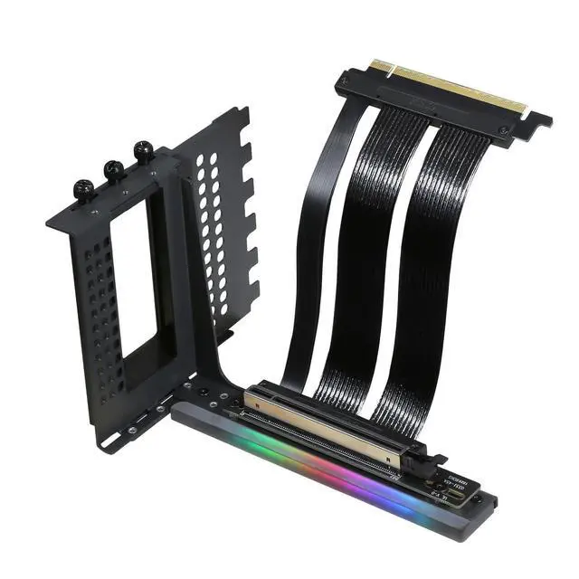 This PCIE GEN5 riser cable solution was originally developed Data center application; on some specific system, this riser cable can support GEN5 data transmission with 1 meter length. ^^ This cable supports Nvidia, AMD, Intel and all other gaming and professional GPU, without setting up the PCIE port to lower generation speed in BIOS. Excellent compatibility for GEN5, GEN4, GEN3 and even earlier versions. ^^ Built with low loss Twinax ribbon cable - Aluminum shielded cable, double layers construction, flexible and folderable. ^^ It will need at least 6 slots' space to install this GPU vertical Mount bracket, before you order this Kit, It is recommended to check the space inside your PC case, it is also recommended to use Water-cooled radiator so as to avoid the vertically install GPU conflicts with the Air-cooled radiator.