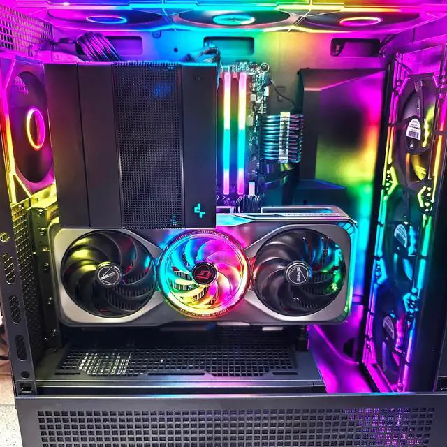 ^^ Please also check if there are ribs between the PCIE slots at the back side of the case, those cases with ribs will block the DP/HDMI cable to plug onto GPU you may need to cut it off a little bit as shown in our picture. ^^ Due to the smart mechanical design and the using of L shape steel, the bracket is strong enough to support current large and heavy GPU like RTX4090, RTX5090D, RX7900XTX. ^^ The bracket is low visible.