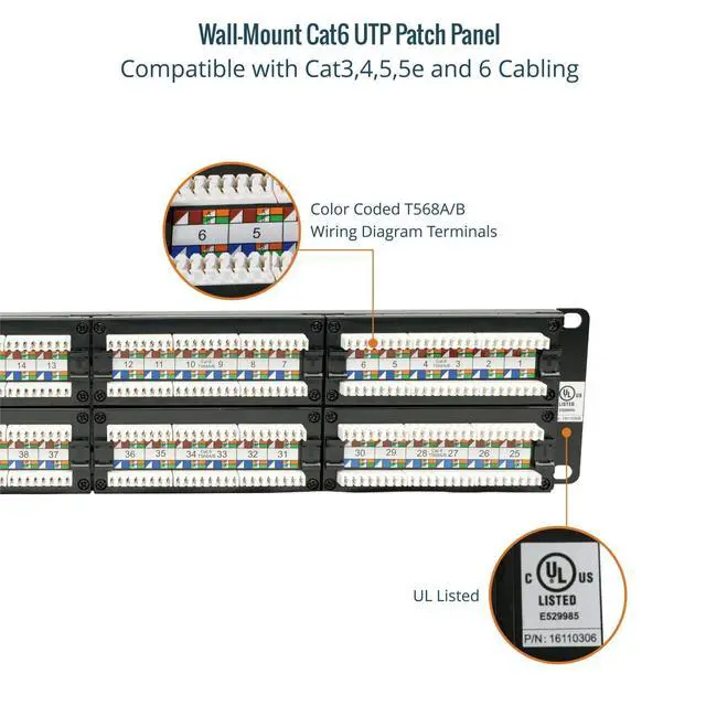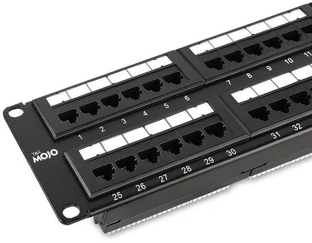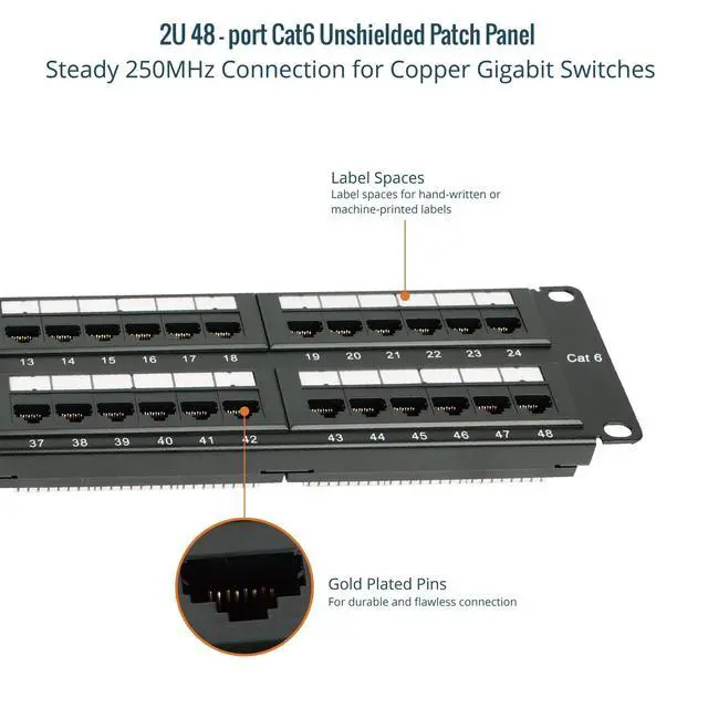 High-Performance Compatibility: The 48-port patch panel is designed to support Cat6 cabling, while remaining fully compatible with Cat5e and Cat5, ensuring flexibility for various network setups ^^