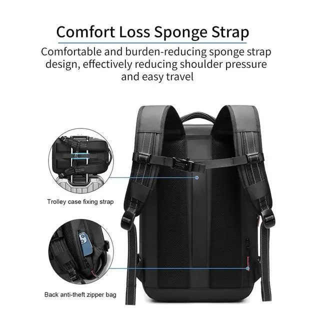 It's built to hold all the essentials for your journey. ^^ Durable and ComfortableOur vacuum seal backpack is crafted from high-density Oxford fabric, making it water-resistant and scratch-resistant. The backpack is designed with an ergonomic airflow system at the back, complete with thick, soft, and ventilated padding to alleviate stress on your shoulders and neck, ensuring a more comfortable and relaxing trip. ^^ Ideal Travel CompanionThis backpack remains a carry-on size ensures hassle-free airline boarding and eliminates extra baggage fees. The spacious main compartment can hold 10-20 pieces of clothing, which is perfect for short and long trips, providing of mind throughout your journey.
