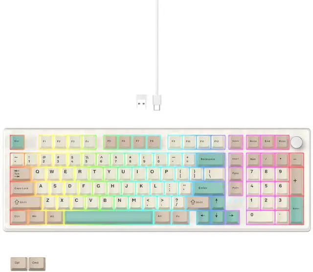 Surrounding RGB: The LUMI101 features an 87-key tenkeyless layout that saves desk space while keeping essential keys like arrows and the function rowperfect for both work and gaming. Equipped with a built-in 4000mAh rechargeable battery, it delivers extended wireless use with fewer charging interruptions. The double-shot PBT keycaps are made from two molded layers for durable, fade-resistant legends that stay vibrant over time. Combined with its signature surrounding RGB light and glowing logo, LUMI101 brings both function and visual flair to your setup.