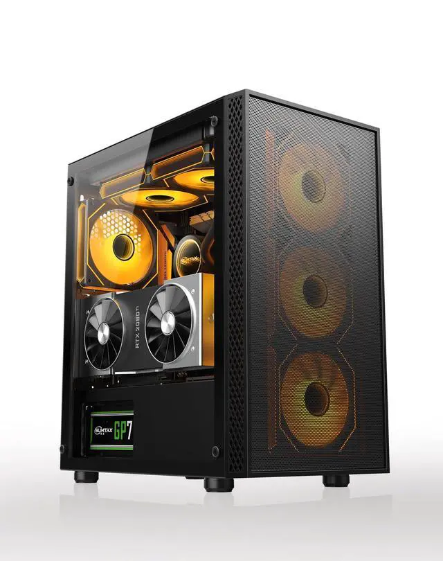 High-Airflow Mesh Front & Stunning Tempered Glass View: Cool Your Gear, Show Your Style. This case features a full-perforation steel mesh front panel that pulls in massive amounts of cool air directly to your components, making it a top choice for superior air cooling. Paired with a panoramic, high-clarity tempered glass side panel, it puts your powerful hardware and RGB lighting on full display.