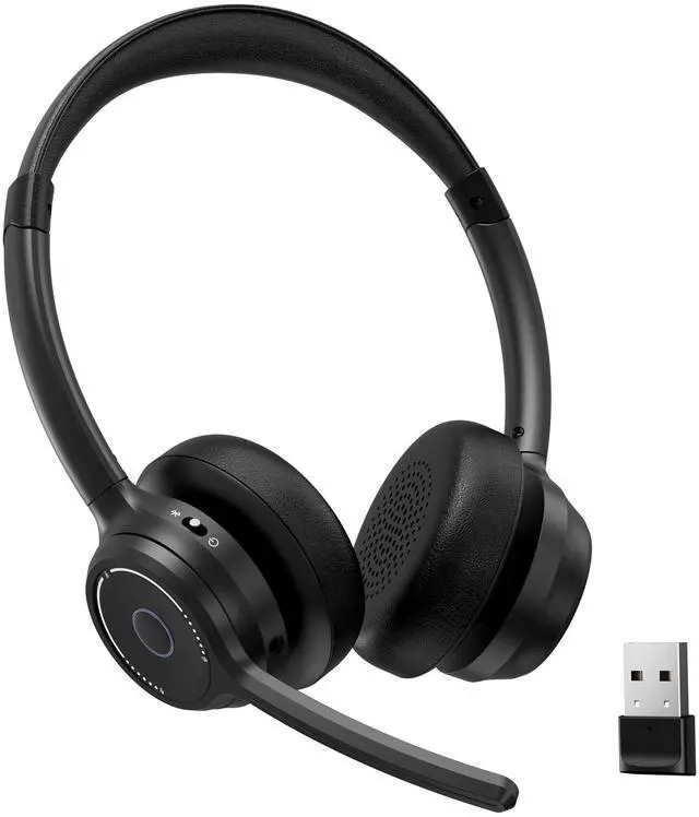 Bluetooth V5.4 & USB Dongle: The Bluetooth headset can let you experience the freedom and flexibility, offering two connection options: Bluetooth V5.4 and a USB adapter. Say goodbye to tangled wires and workspace clutter. The USB dongle ensures a secure, stable connection with low latency. Stay connected and productive even when you step away from your desk, without any signal loss concerns