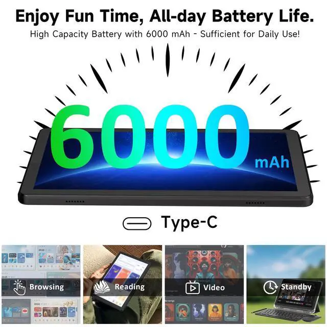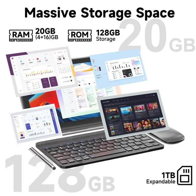 ICONLINK CP31M 10" HD display tablet PC, USB Type C Port, 128GB storage and support 1024GB microSD card, 20GB RAM (Including 16GB of expandable memory), Keep all your favorite music, photos or videos, plays videos more smoothly. and enables an impressive gaming and multimedia experience.