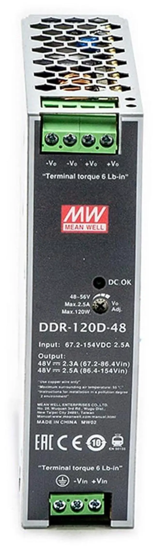Performance: Engineered with premium components, the DineDeck DDR-120D-48 delivers a stable 48V DC output at 2.5A, ensuring consistent performance and long-term reliability for critical applications.