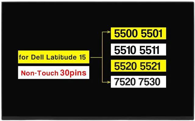 Cable Pins: 30 pin ^^ [Important] Please check that the original screen resolution, Data Cable Pins, Touch or non-touch functions and screen inches are same as described on the link. ^^ [Important] After purchasing, We suggest you remove the screen from the computer, there is a small sticker on the back of the screen, the sticker says the screen model, then take a picture and send it to us. ^^ [Important] Please install it Very Professionally, if Not, Please Do Not Try. (You need to Pull Off the Power Adapter & Battery Cable when install). Package includes LCD Screen Only (NOT a laptop). ^^ [Important] All products we provide are compatible based on our test. we will send you Depending on our stock.