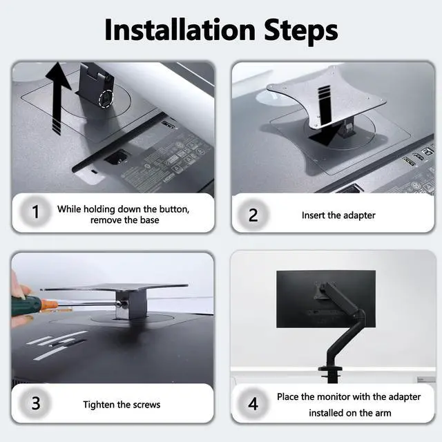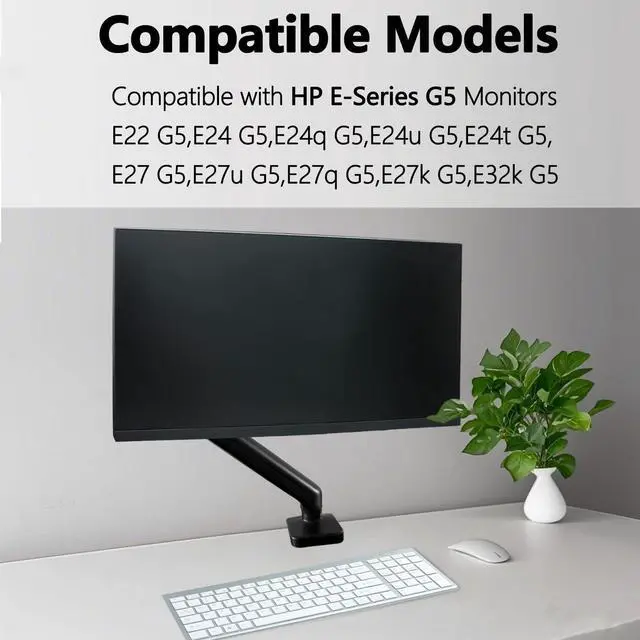 VESA Support: Compatible with HP E Series G5 VESA Mount Adapter is the ideal accessory for E Series G5 users. It solves the mounting problem of monitors without VESA holes and is fully compatible with 75x75mm or 100x100mm VESA Various robotic arms Say goodbye to limited mounting options! ^^