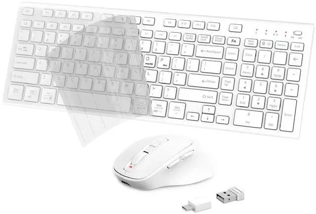 Rechargeable USB-C Keyboard & Mouse, Save Money & Effort Say goodbye to battery costs and waste! This combo charges fully in about 1.7 hours via modern USB-C and lasts 1.2 -2 months on a single charge. A clear low-voltage indicator ensures you're never caught off guard. ^^ Ultra-Quiet Typing & Silent Clicking for Peaceful Work The keyboard features scissor-switch and the mouse has quiet buttons. The soft silicone cover is not only dustproof and splashproof, but also has a soft touch and a better noise reduction experience, creating a truly low profile office or home environment.