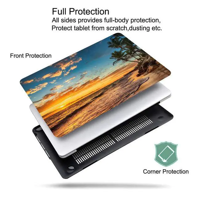 Features: Made of durable hard plastic, it protects your laptop from scratches and simple wear and tear. The silicone keyboard cover protects your keyboard from fingerprints, spills, dirt, etc. Has a cutout for the logo. Fully access to all ports, buttons, and features. Vents on the bottom piece let the device release heat, helping keep your laptop cool. Four non-slip silicone feet keep your laptop firmly in place. 2-piece, snap-on design. Snug fit, easy to put on and remove. Ultra-thin and lightweight, it won't add any noticeable weight or bulk to your laptop.