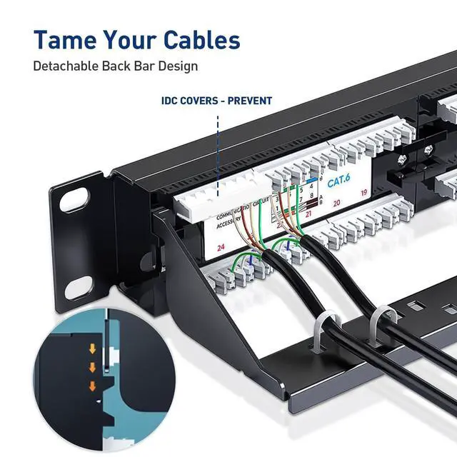 Cable Management: Streamline your installation with our unique all-in-one patch panel. It comes pre-equipped with a rear cable management bar, eliminating the need for separate purchases. This integrated solution keeps cables neatly organized, reduces clutter, and simplifies maintenance. ^^ Gigabit Performance & Effortless 110-Type