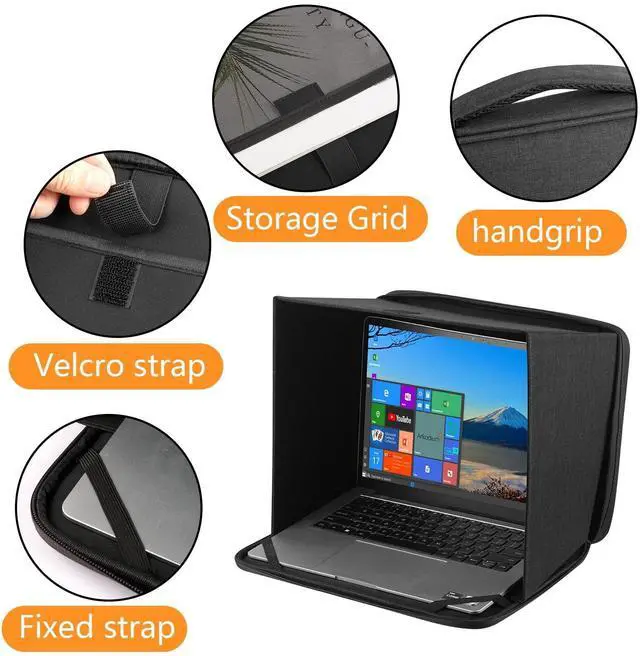 Good partner for working outdoor: This Laptop Sun Shade Sleeve Bag can reduce the sun glare on the screen effectively, offer you better visual experience. It's ideal sun shade for your laptop/notebook, can be used in outdoor work, travel, beach, camping and other outdoor scenes. ^^ Multi-functional design, when used outdoors, this is a Laptop Sun Shade & Privacy Shield, and when you are not using this feature, this is a Laptop Sleeve Bag, easy suitcase. ^^ It is easy to install and can be installed according to the video. Just put the computer in Sleeve and open and paste. ^^ High -quality material, It made of durable, give laptop bag provides a scratch free environment.