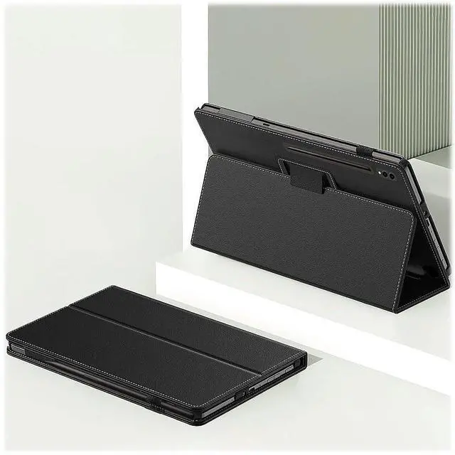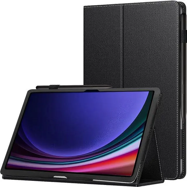 Designed for use with Galaxy Tab S10 FE, Tab S9 and Tab S9 FE - Complement your device with this lightweight, formfitting case featuring an open-button design. ^^ PU leather and TPU materials and Ergonomic open-button design - Feature reduced stretching and yellowing to ensure durability and Provides easy access to controls ^^ Precise cutouts and raised edges and Folio case design - Allow you to use and protect your tablet simultaneously and Features a convertible front cover that transforms into a practical stand with different positions ^^ Auto sleep and wake cover - Automatically wakes up your device when opened and puts it to sleep when the case is closed to keep the battery life longer ^^ SAHARA Limited Lifetime Replacement Warranty.