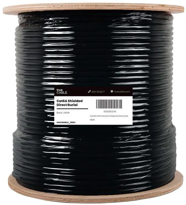[High Performance] 23 AWG Cat6A LAN cable with overall foil shielding (F/UTP) to eliminate EMI and crosstalk. Supports 1G/10G speeds up to 328ft and bandwidth up to 750 MHz. Fully compatible with PoE++ 802.3 bt (100W) for high-power applications. ^^ [Hassle Free Packaging] 500 feet (152 meters) comes conveniently pre-spooled on a tangle free, easy pull reel so you dont have to worry about getting behind on your next job. ^^ [Solid Bare Copper Conductors] Pure bare copper conductors offer superior signal strength, conductivity, and flexibility compared to cheaper copper clad aluminum (CCA) options.