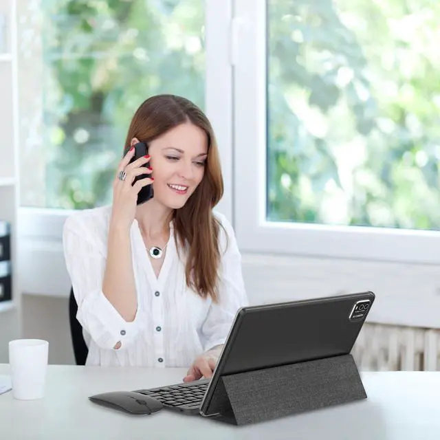 Portable 2-in-1 Tablet PC 2 IN 1 Tablet has passed GMS certification, tablet comes with bluetooth keyboard, wireless mouse and foldable protective case, it can flexibly turn tablet into a laptop mode or computer mode. By connecting the keyboard and wireless mouse through Bluetooth, it becomes an ultra portable mini laptop, perfect for home, school, and office use. Enables you to work and learn efficiently and quickly handle daily tasks, offers you limitless features and capabilities ^^ Faster Responsive PerformanceOur 10 inch tablet equipped with stable Android 14 system, Bluetooth 5G-WIFI WIFI6, 8GB RAM (Includes 6GB of virtual memory) and 64GB ROM, with microSD card slot which can expanded up to 1024GB, more app, songs, videos and pictures can be saved right on your tablet.