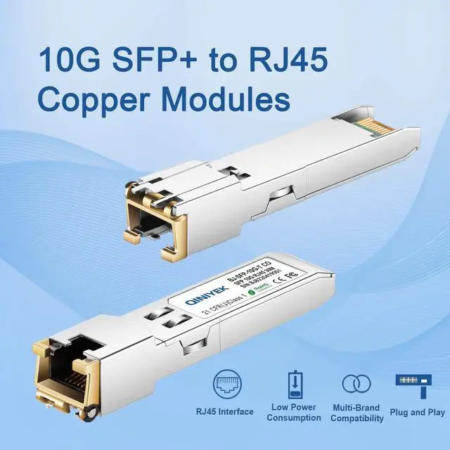 Reach: up to 30m using Cat. 6a/7 Cable. ^^ 10GB SFP+ RJ45 2Pack Wide CompatibilityFor Cisco for Cisco SFP-10G-T-S, MikroTik S+RJ10, Ubiquiti UF-RJ45-10G, Netgear AXM765, Netgear, TP-Link, Fortinet and Other Open Switches. ^^ Durable Raw MaterialsRJ45 SFP+ adopts the high quality of raw materials, and to ensure product reliability and enhances the service life. ^^ Plug and playSFP to RJ45 10Gb Rotate the ring latch down at 90 degree angle to unlock, then pulling transceiver out from switch. Plug and play, hot-pluggable. ^^ How to Resolve Module overheating issueDue to the limitations of the chip solution, the 10G electrical port module exhibits a certain degree of heat generation during operation. Do not touch it directly with bare hands. When it needs to be unplugged after use, please wear anti-static gloves for the removal. After unplugging, cool it down with a small fan or place it in a low-temperature environment for ventilation and standing for a period of time before reuse. ^^ After-sales Service10GB Transceiver RJ45 30-day free return, 3-year warranty, lifetime technology support. We produce high quality transceivers, any product quality and compatibility issues, please contact us(amz@qiniyek.