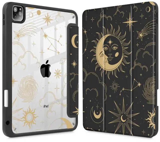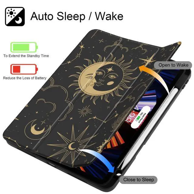 Gen Model: (A1980/A2013/A1934/A1979), NOT compatible with any other devices, Please kindly check the model number Axxxx on the bottom of iPad before purchasing. ^^ Made of Premium clear Alec exterior, 360 fully protect your iPad against shocks, drops and impacts. Clear design can make you better show your apple iPad.. ^^ The trifold stand design can easily change the angle to meet your viewing and typing needs. 65 video mode can act as a screen stand; 30 input mode acts as a keyboard stand. ^^ /Built-in magnetic strip, automatically wakes or puts your tablet to sleep when the lid is opened and closed. Protects and extends battery life. Powerful built-in magnets ensure a strong lock between the case & iPad. ^^ Design with pencil holder, easily to pull out and store your pencil, Support 2nd gen Apple Pencil wireless charging and Precise cutouts easily access to all buttons. pencil NOT included