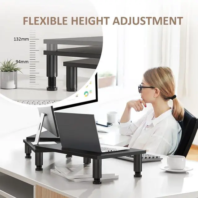 EASY TO ASSEMBLE: In just two minutes, you can get a monitor riser that makes your work more comfortable and efficient. Just use screws to assemble the base frame together and attach the 2 side frames to the middle section. Then adjust to the angle you need