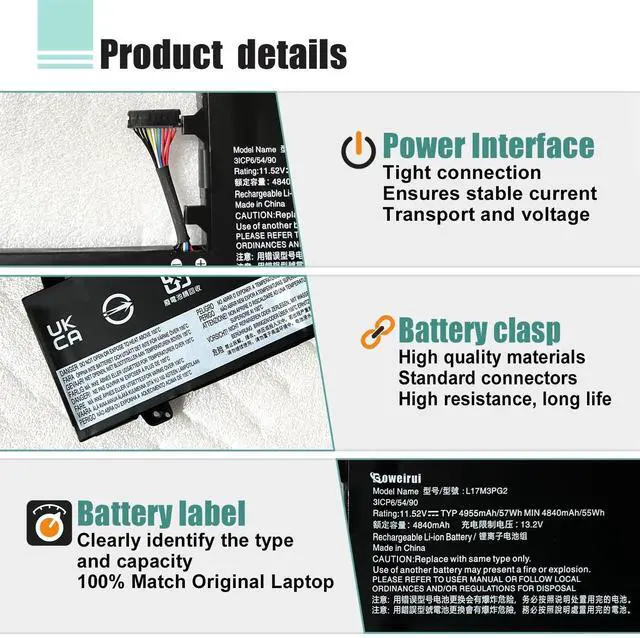 Package include: 1*L17M3PG2 battery 1 set matching installation tools. 1*Instructions for L17C3PG2 Battery for legion y740-15irhg battery, All our products are 100% brand-new from manufacturer. Up to 500 recharge cycles over the life of the battery ^^ Replacement for Part NumberL17M3PG2, L17C3PG2, SB10W67190, 5B10Q88557, 5B10Q88559, 5B10S56966, 5B10T30217, 5B10T31045, 5B10W67295 ^^ Compatible with ModelsL17M3PG2 battery Replacement Battery For Legion Y730-15ICH Y740-15ICHG Y740-15IRH Y740-15IRHG Series (Not Fit For Legion Y540-17IRH Series Type 81Q4 81T3) ^^ Quality AssuranceOur L17M3PG2 laptop battery is highly compatible with the original Battery L17C3PG2 for legion y740-15irhg battery and meets CE/FCC/ROHS/UL certified standards. Strict guidelines for compatibility, Use of built-in circuit protection to ensure safety and stability. For assistance with the L17M3PG2 battery, please visit our product detail page OR please contact us by email at any time, our professional technical team is standing by to provide you with assistance and service. ^^ Return Policy-After sale warrantyRest assured 30 days full refund. 12 months free replacement for Non-human factors. Email reply within 24 hours.
