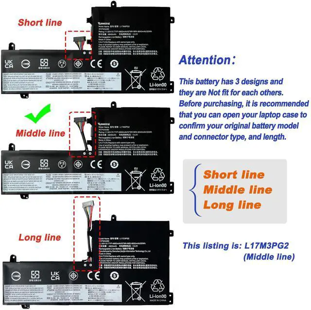 AtteotionThere are three lengths of connecting wires for this battery and they are not fit for each other. The wire length of this battery is Middle Wire, not long wire, please check the length of the original battery connecting wire, so as not to purchase the wrong one, which will lead to failure to install.