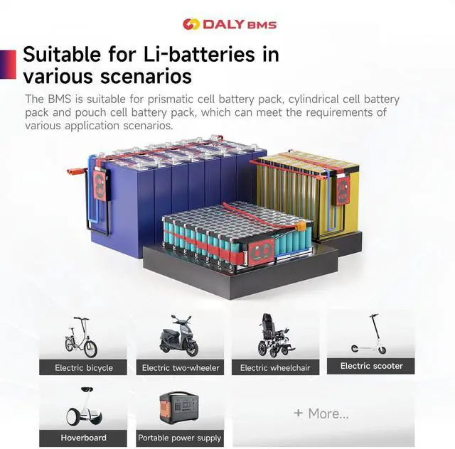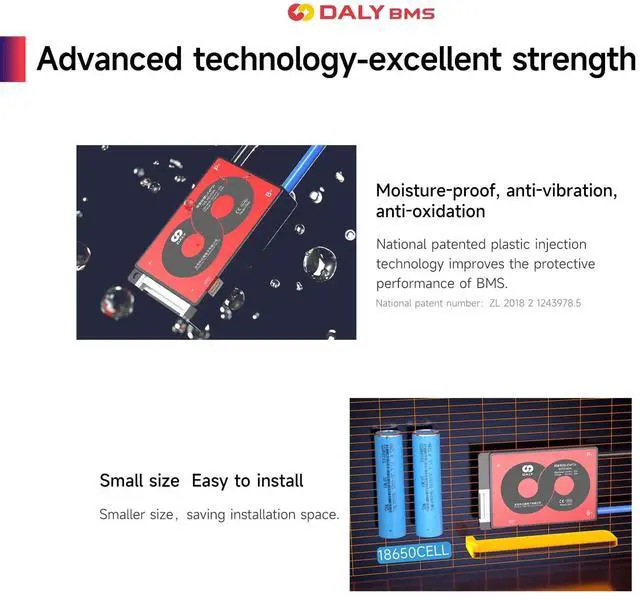 DALY BMSAdopt injection molding sealing process, with dustproof, shockproof, waterproof, anti-accumulation function ^^ Multi -Function ProtectionOver-charging, Over-discharging, Over-current, Temperature and Short-circuit protection functions. --- ISO/ FCC/ RoHS/ PSE/ CE APPROVED ^^ New UpgradeSmaller size; Low temperature rise; Consistent Chg/Dischg cuurrent. ^^ Easy to installEasy to plug and unplug, which allows you to effortlessly create an electrical connection between the battery pack and the BMS. ^^ NoteStandard BMS dosen't have communication functions. If you need smart BMS, active balancer, parallel module or other accessories, please contact online customer service.