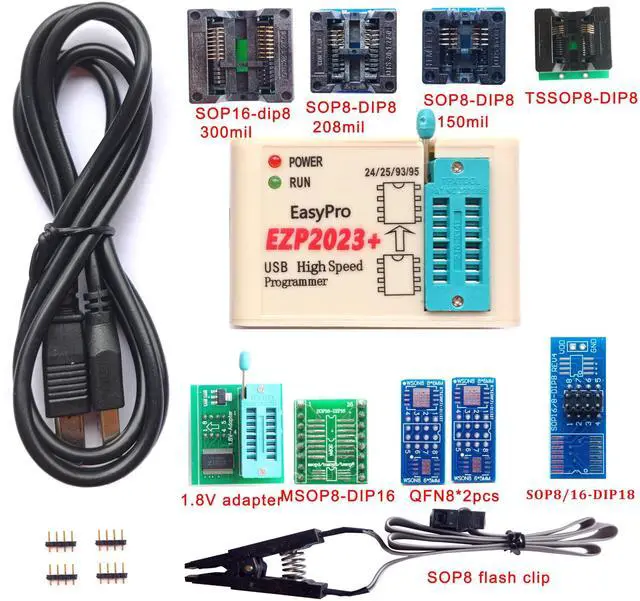 EZP2023 Difference from EZP 2019: 1. The read and write speed is faster. It only takes 3 seconds to read EN25T80 and 9 seconds to write EN25T80. It is currently the fastest BIOS chip programmer on the market. 2. Automatically identify chip model (mainly for 25 series chips, 24/25/93/25/95 EEPROM needs to be manually selected). 3. Automatically detect whether the chip is placed; 4. The chip supply voltage is automatically selected. 5. It fully supports 25 SPI FLASH, 24 EEPROM, 25 EEPROM, 93 EEPROM, 95EEPROM and other series of memory chips.