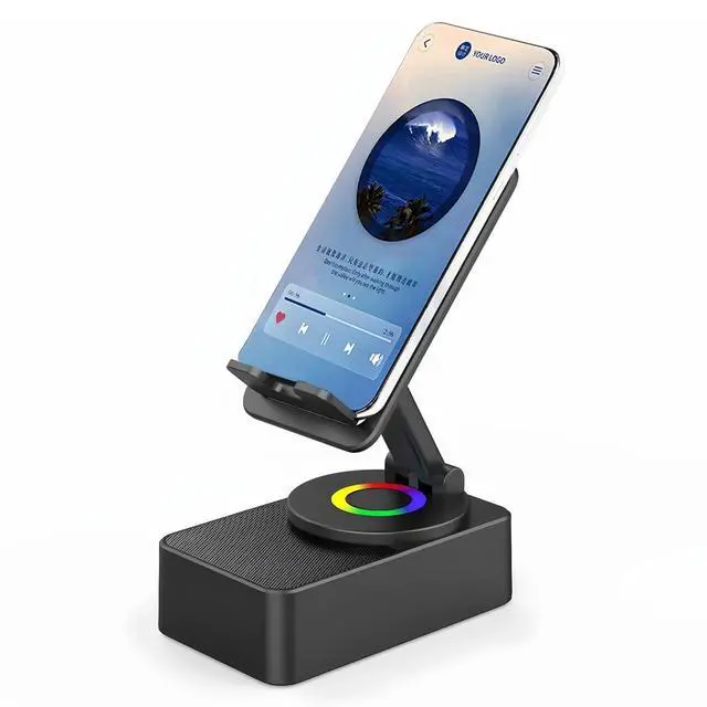VERSATILE FUNCTIONALITY: Features a phone holder with 360-degree rotation capability, built-in Bluetooth speaker, and charging functionality all in one sleek device ^^
