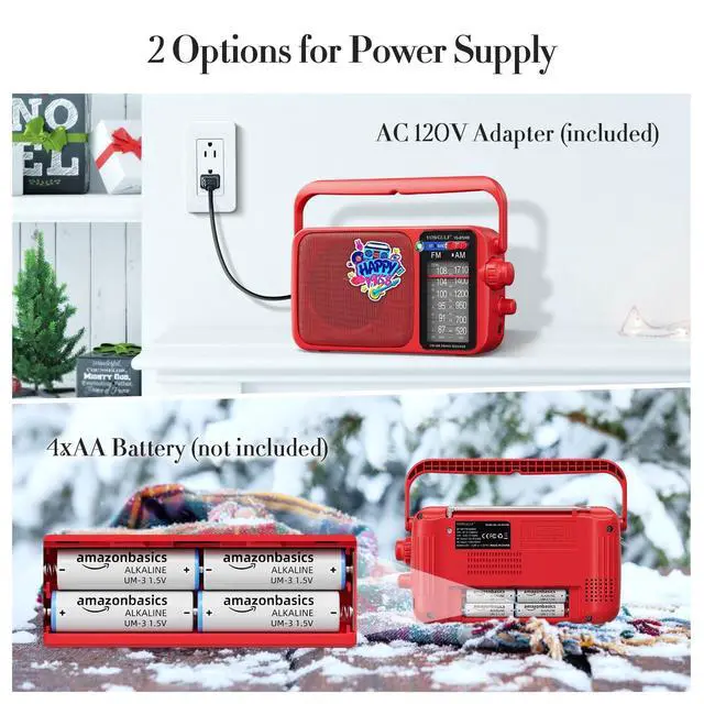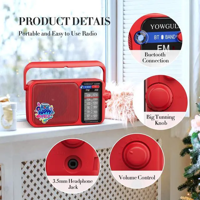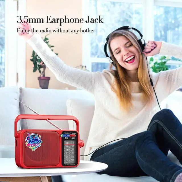 Earphone/ Headphone Compatible radio for you to plug in any headphones with a 3.5 millimeter jack for privacy as you listen ^^ AM FM Radio with Bluetooth - Bluetooth function make it possible to play your loved music from your phone and other Bluetooth devices ^^ Two Power Supply Choice No Worry about Power Outage - The YOWGULF am fm radio is designed for two charging ways. While you are indoor, the AC power for you to plug the charging cable (included) in the wall to listen radio whole day. If there power outage, inserts 4AA Cell batteries (not included), you will happy to have this portable radio ^^ Ideal Gift and Perfect for Daily Life- With good size design and handle, this am fm radio can be taken anywhere.