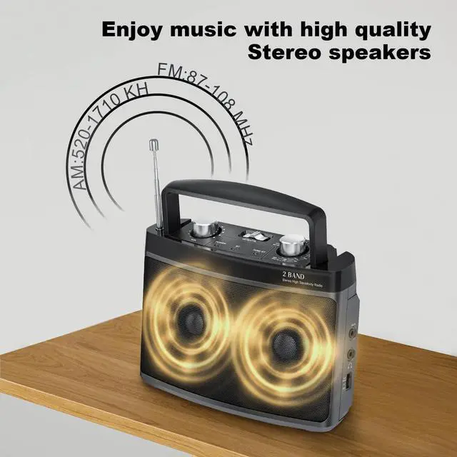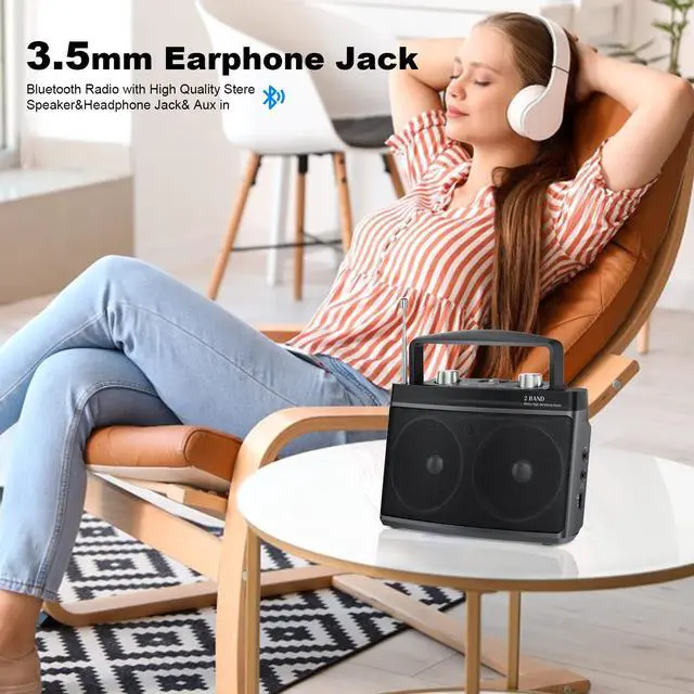 • Bluetooth Stereo Radio with High Quality Speaker&Headphone Jack& Aux in- The AM FM Radio support bluetooth function to connect any Bluetooth device to enjoy music with high quality speakers. Also Simply plug in any headphones with a 3.5mm jack for a private listening space on the go.