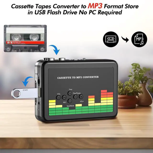 MP3 Conversion: Convert the audio on your tapes to MP3 files in your USB flash drive (manually or automatically converting are optional). No PC or laptop required. Transfer and backup on other devices easily.