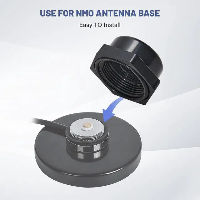 Feature: Base diameter 90 mm / 3.54 inch; 30.8 lbs Pull strength; NMO antenna mount suitable for all kind NMO antenna and mobile radio with UHF female (SO239) connector ^^